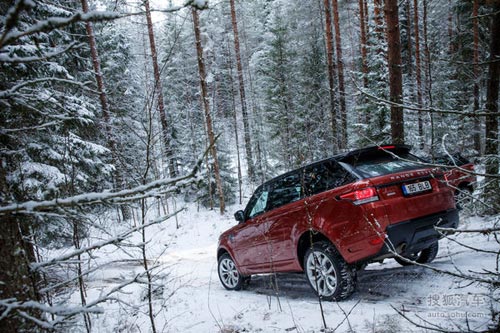 攬勝運動版的試駕項目是通過翻越很大一片片白雪覆蓋的森林,并在無人的高聳林立的樹木之間的越野的路段展現出驚人的抓地能力。