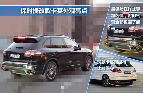 目前搭載4.8L排量的保時捷卡宴車型,對應(yīng)的消費稅率為40%,更換3.0升引擎后應(yīng)對稅率為12%,將降低28個百分點。對于一臺4.8L車型約154-176萬元左右的售價而言,28%的稅率節(jié)省還是非常可觀的。外觀方面,中期改款的保時捷卡宴尾部造型與現(xiàn)款車型基本保持一致,只是新款車型的后保險杠樣式更加兇悍,將雙邊雙出的尾排全部包裹了起來。