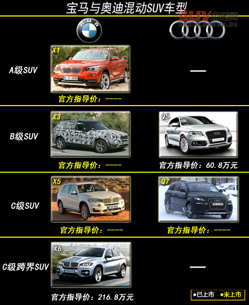 2010年X6混動版車型正式登陸中國也成為寶馬引入國內銷售的首款混動SUV車型,而為在增長空間巨大的中國市場擁有一定的份額,在去年奧迪也引進了定位中型SUV的Q5 hybrid quattro,已通過與X6相比,較低的市場定位占據份額更大的豪華中型SUV市場。而隨著未來寶馬三款定位在不同級別的混動SUV引入后,將與奧迪等品牌在新能源市場展開全面競爭。