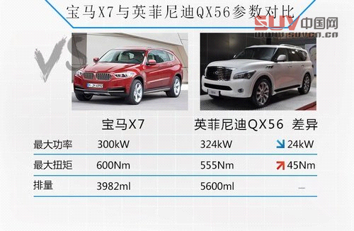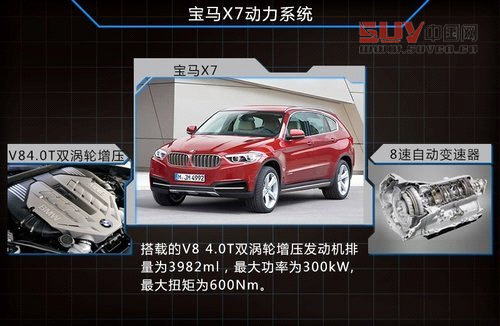 動力方面,寶馬X7將搭載V84.0T雙增壓發(fā)動機,與之匹配的則是8速自動變速箱。這款大型SUV將競爭對手鎖定為英菲尼迪QX56。寶馬X7搭載的V8 4.0T渦輪增壓發(fā)動機最大功率為300kW,最大扭矩為600 ,雖然和最大功率為324kW,最大扭矩為555 的英菲尼迪QX56相比較略占下風。