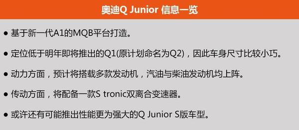 或2019年發布 奧迪計劃推出入門跨界SUV 最后編輯:時間:2015-05-08 13:14 來源:互聯網 全國 日前有消息稱,奧迪正計劃著推出入門級跨界SUV車型,并將其命名為Q Junior。據悉,這款全新SUV車型或將于2019年發布。