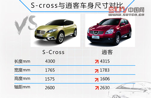 鈴木S-CROSS車身尺寸為長4300mm/寬1765mm/高1575mm,軸距達到了2600mm。在動力上將搭載鈴木最新開發的高性能1.6升發動機,有望匹配6速手動以及CVT變速器。此外新車還有望匹配與吉姆尼相同的四驅系統,其上市后將與市場熱門跨界SUV-逍客等車型競爭。