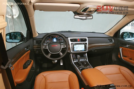 既然定位明確為中高端SUV,豐富的配置和豪華內飾就是必不可缺的。新車在內飾上走主流歐系豪華車的設計風格,并采用上深下淺的顏色搭配。在H8的試裝車上,目前我們看到內飾有淺黃和棕黃兩種。儀表盤的設計比較運動,為雙炮筒式,并匹配冷光可調節背景燈,中間的液晶屏很實用,可顯示多種行車提示信息。四輻多功能方向盤便利性非常高,音響控制和藍牙電話等常用功能都被設置在上面,并且為了增強駕駛樂趣,H8還配有換擋撥片。