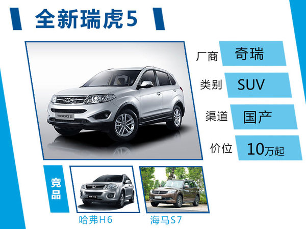 奇瑞旗下首款緊湊SUV——瑞虎5在剛剛開幕不久的廣州車展上亮相,新車將于今日正式上市。奇瑞汽車股份有限公司董事長兼總經理尹同躍表示:“我們希望瑞虎5能夠成為大連汽車本地造的一款名片式產品。”近日網通社從奇瑞汽車經銷商處了解到:新車預計售價有望10萬元起售。