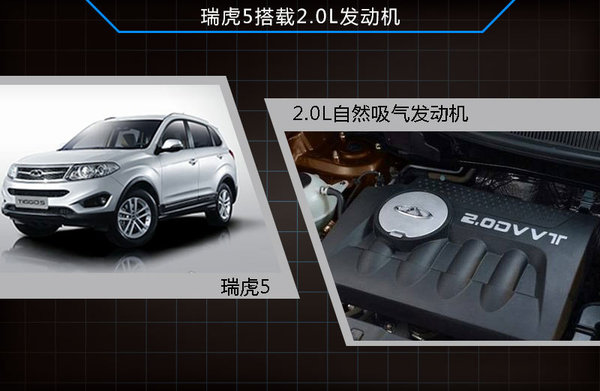 內飾方面,瑞虎5運用了更多運動元素,配備了更大的電子屏幕,取消了原來電子屏幕上方的出風口,更換為兩側出風和中央控制旋轉按鈕。儀表采用潛望鏡設計, 較之前普通的儀表更突顯運動色彩。新車的內飾在追求時尚的同時,用料和裝裱工業也更加細致。動力方面,瑞虎5搭載的是2.0L自然吸氣發動機,匹配5速手 動變速器或CVT變速器,該發動機可產生最大為102kW功率,最大扭矩為182Nm。