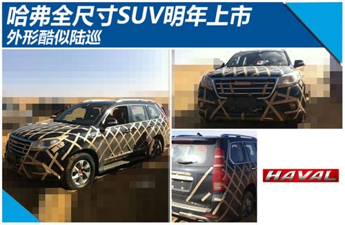 隨著大型SUV-H8在今年廣州車展期間正式上市,哈弗產品線已布局H5/H6/H8三款車型,覆蓋全系SUV領域將成為長城哈弗未來的重要方向,對此長城汽車董事長魏建軍在接受媒體采訪時表示:“未來哈弗品牌將實現從H2到H9的全系車型覆蓋。”近日網通社獲取了哈弗H9的諜照及相關信息,新車將定位于全尺寸SUV并在設計上與豐田同級別車型蘭德酷路澤頗為相似。此外網通社從長城哈弗4S店處了解到:哈弗H9將有望于明年正式上市。