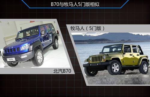 首先推出的這款北汽BJ40外形與JEEP牧馬人3門版車型十分相似,而B70則將是一款長軸距版車型,或將效仿牧馬人5門版車型。北汽BJ40的軸距為2450mm,而B70的軸距將在這個基礎上加長,其將會采用五門設計,長軸距在越野能力上可能會略遜于北汽BJ40,但在實用性方面則有大幅改善,增加的軸距會讓后排乘員的腿部空間得到釋放,以提升新車的實用性。