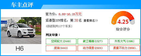 看到了哈弗H6的熱銷,我也試圖從車主的口碑中找尋答案。從車主的實際點評來看,哈弗H6比較被認可的優勢在于空間巨大、外形大氣以及做工比較令人滿意,當然對于哈弗H6的主要不滿集中在動力方面,像油耗偏高、動力輸出較弱都是具體表現。