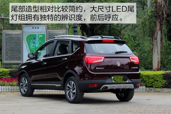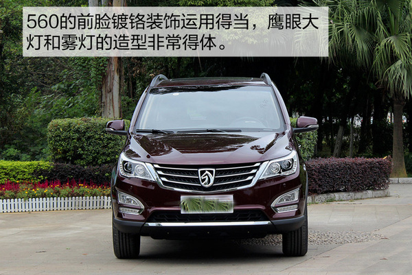 寶駿想造的就是家用車,所以整體上來說寶駿560的設計也是大方自然,沒有什么浮夸之處,當然該閃亮的地方還是會做足了,比如說前臉的鍍鉻中網、霧燈外沿鍍鉻條、前唇上沿鍍鉻條,看上去也是足夠吸引人的。而類似發動機蓋和尾門上隆起的硬線條,也讓它擁有了SUV需要的硬朗,20厘米的離地間隙更是讓它有了很實際的通過性。