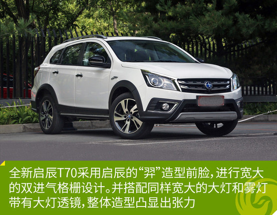 啟辰T70是啟辰品牌旗下一款緊湊型SUV,在前不久正式推出了新款車型,該車主要對車頭進行了調整,前雙幅格柵加入啞光飾條進行裝飾,營造了更加強烈的視覺沖擊性。后視鏡外殼則加入了黑色亮光處理,動感熏黑鹵素前大燈在強化了外觀造型氣勢的同時,也平添了全車的運動感。