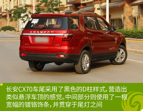 車尾部分,長(zhǎng)安CX70采用了黑色的D柱樣式,營(yíng)造出類似懸浮車頂?shù)母杏X(jué)。中間部分則使用了一根寬幅的鍍鉻飾條,并貫穿于尾燈之間。新車還設(shè)有銀色的行李架及擾流板。