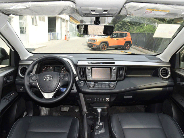 內(nèi)飾上,中控臺(tái)大面積采用了皮質(zhì)縫線設(shè)計(jì),車廂的氛圍很上檔次,編者認(rèn)為,和上面兩款車型相比,榮放的內(nèi)飾設(shè)計(jì)更具豪華感。