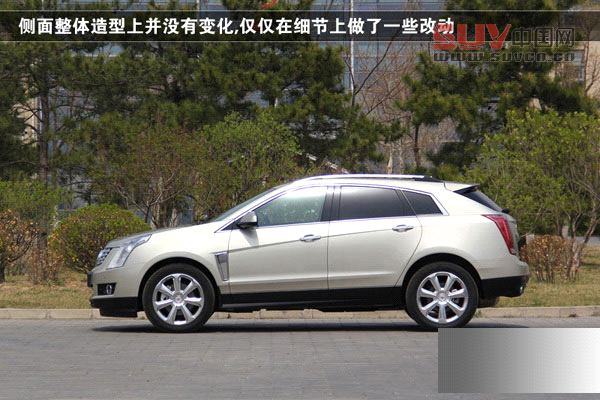 2013款凱迪拉克SRX在側面整體造型上并沒有變化,依然保持了凱迪拉克所特有的棱角分明的家族式設計風格,鉆石切割與隨處可見的盾形特征依然是它的主旋律,轎跑式的車身造型讓它的側面看上去與CTS Coupe有幾分相似之處。