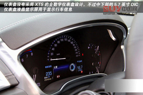 儀表盤并沒有采用XTS的全數字儀表盤設計,不過中下部的5.7英寸DIC儀表盤液晶顯示屏還是能夠顯示所有的行車信息,且分為三部分的顯示格局均可以自由切換以顯示不同內容,顯示直觀且操作十分方便。
