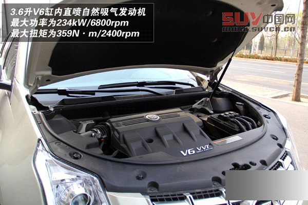SRX采用了3.0/3.6升發(fā)動機,這兩款V6發(fā)動機均采用全鋁設計,并包含了缸內智能直噴、DVVT電子可變雙氣門正時以及ECM發(fā)動機管理模塊等技術,3.0L最大功率為199kW/7000rpm,最大扭矩為302N·m/3200rpm。3.6L發(fā)動機最大功率為234kW/6800rpm,最大扭矩為359N·m/2400rpm。匹配6速自動變速箱。
