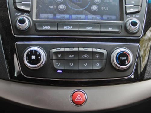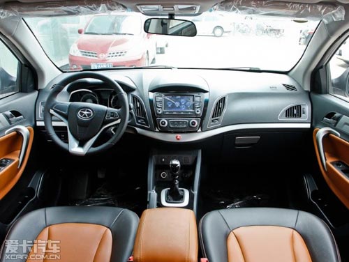 不出所料,瑞風S5的內(nèi)飾設(shè)計在一定程度上借鑒了北京現(xiàn)代ix35的元素,比如說中控區(qū)域的布局以及空調(diào)出風口的形狀等等。自左至右貫穿整個儀表臺的銀色裝飾條不但為內(nèi)飾部分增加了對比的視覺感受,而且也讓整體風格顯得年輕并富有活力。除此之外比較值得稱贊的是,瑞風S5的內(nèi)飾部分雖然以塑料為主要材質(zhì),但在制作工藝上已經(jīng)可以與合資品牌車型相競爭。