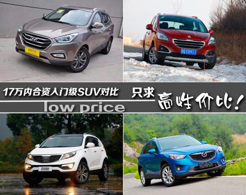 得益于高大威猛的外觀造型和寬敞的車內(nèi)空間等優(yōu)勢,很多消費(fèi)者都對于SUV車型喜愛有加,SUV市場也因此成為了各大廠商爭相哄搶的一塊“大蛋糕”。不過目前大多數(shù)合資品牌SUV車型的起步價(jià)格都在17萬元以上,能夠把價(jià)格控制在這個(gè)范圍之內(nèi)的大概也就只有標(biāo)致3008、馬自達(dá)CX-5、起亞智跑和現(xiàn)代ix35了。也許有朋友會質(zhì)疑怎么沒有翼搏、昂科拉和逍客,這幾款車雖然價(jià)格便宜,但空間較小,對于四口之家來說其實(shí)并不實(shí)惠,也不實(shí)用,所以本文重點(diǎn)還是做緊湊級SUV的低價(jià)對比。