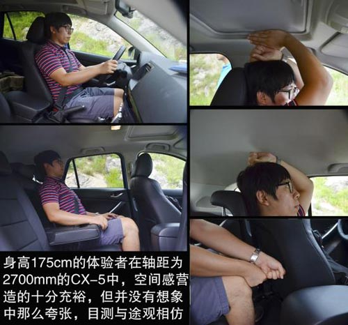 馬自達(dá)CX-5的軸距為2700mm,這個(gè)數(shù)據(jù)跟CR-V(2620mm)、RAV4(2660mm)等主要競爭對手相比都有不錯(cuò)的優(yōu)勢,身高175cm的駕駛員坐在駕駛位時(shí),無論頭部還是腿部都有著十分充裕的空間,頭部空間可達(dá)一拳多,長時(shí)間駕駛也不會感覺壓抑,而且坐姿較高視野開闊。而坐進(jìn)后排,頭部有一拳的距離,腿部也有一拳多的空間余量,對于家用車來說已經(jīng)很是足夠了。