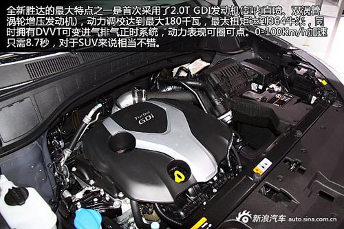 國產全新勝達將搭載2.4升發動機和2.0T發動機。其中2.4升發動機最大輸出功率為189馬力,峰值扭矩達到240牛米;其中2.0T發動機是現代旗下直噴渦輪增壓發動機首次出現在國產車型上,這款發動機可爆發245馬力的最大功率,而最大扭矩則達到了350牛米。與發動機匹配的分別是6速手動和6速手自一體變速箱。