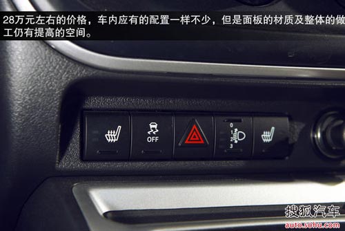 乘坐空間方面基本夠用,坐入車內(nèi),較高的中控臺(tái)加之小尺寸的風(fēng)擋并沒(méi)有給人帶來(lái)SUV車型普遍的寬敞視野,不過(guò)卻有著很強(qiáng)的包裹感,整體給人感覺(jué)是輛不折不扣的硬派車型,很安全。實(shí)際的乘坐空間基本夠用,但由于后排中部的高地臺(tái)和杯架,使得其后排中部乘客的舒適性大打折扣。