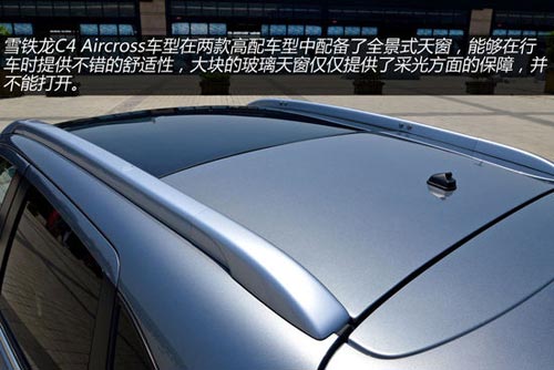 雖然雪鐵龍C4 Aircross的中控沒(méi)有太多亮點(diǎn),但是車廂內(nèi)有一個(gè)配置不得不提,那就是頭燈上的全景天窗,雪鐵龍C4 Aircross天窗面積足夠大,一直延伸至第二排的頭頂,無(wú)論是坐在前排還是后排,給人的感覺(jué)都是非常通透的。