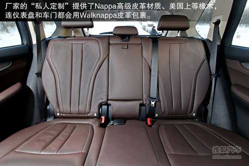 盡管空間沒(méi)有太大的變化,但對(duì)于X5這個(gè)級(jí)別的車(chē)型來(lái)說(shuō),乘坐空間還需要去質(zhì)疑或者測(cè)量么,我們似乎更應(yīng)該關(guān)注一下它乘坐的舒適度。Dakota的真皮材質(zhì)觸感應(yīng)該說(shuō)是非常棒的,如果這都滿(mǎn)足不了你對(duì)品質(zhì)的訴求,那么快去“私人定制”吧,廠家還提供了Nappa高級(jí)皮革材質(zhì)、美國(guó)上等橡木、連儀表盤(pán)和車(chē)門(mén)都會(huì)用Walknappa皮革包裹。