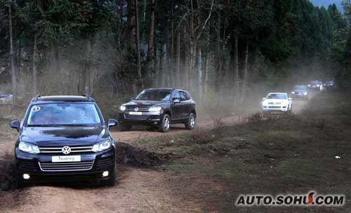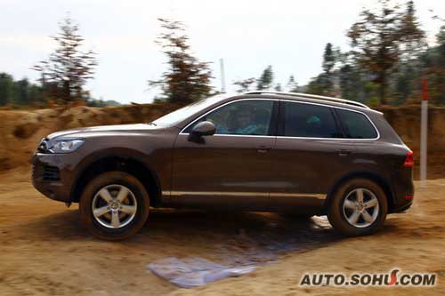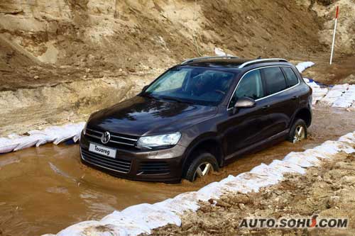 我們還可以為途銳選裝的4Xmotion四驅(qū)系統(tǒng),這個(gè)是用戶(hù)在購(gòu)車(chē)時(shí)能夠自行決定是否加裝的的四驅(qū)系統(tǒng)選件,它同時(shí)具備了中央電子差速鎖和低速四驅(qū)擋之外,還增加了一把后橋電子差速鎖,這樣在越野性能上就有了本質(zhì)的提升。從實(shí)際的表現(xiàn)來(lái)看,鎖定中央及后橋差速鎖后,在通過(guò)炮彈坑時(shí)(交叉軸),懸空的車(chē)輪并沒(méi)有出現(xiàn)空轉(zhuǎn),而是與另外一側(cè)車(chē)輪保持同樣的轉(zhuǎn)速通過(guò),可見(jiàn)后橋差速鎖還是起到了關(guān)鍵的作用。