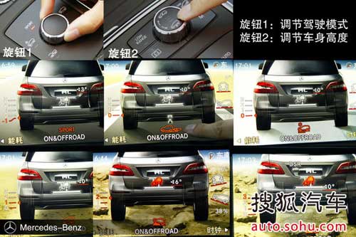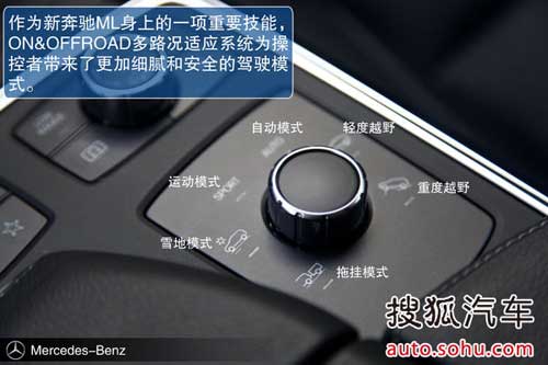 作為新奔馳ML身上的一項(xiàng)重要技能,ON&OFFROAD多路況適應(yīng)系統(tǒng)為操控者帶來(lái)了更加細(xì)膩和安全的駕駛模式。從設(shè)計(jì)方面來(lái)看,新奔馳ML不同操控模式的選擇方式與路虎覽勝有些相似,這套系統(tǒng)能夠提供包裹自動(dòng)模式、運(yùn)動(dòng)模式、雪地模式、拖掛模式以及兩種程度越野模式在內(nèi)的六種選擇。當(dāng)選擇任何一種模式,系統(tǒng)都會(huì)對(duì)發(fā)動(dòng)機(jī)、變速箱、AIRMATIC空氣懸掛、轉(zhuǎn)向系統(tǒng)以及牽引力控制系統(tǒng)進(jìn)行相應(yīng)調(diào)節(jié),另外中控屏幕和儀表盤(pán)行車(chē)電腦也會(huì)隨時(shí)向操控者顯示當(dāng)前狀態(tài)。
