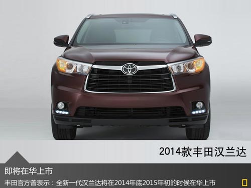 2014款漢蘭達(dá)作為一款中期改款車型于去年紐約車展正式亮相,目前并未引入中國市場銷售。對于全新一代漢蘭達(dá)車型何時引入國內(nèi)市場,豐田官方曾表示:全新一代漢蘭達(dá)將在2014年底2015年初的時候在華上市,新款車型的推出將有望進(jìn)一步推進(jìn)豐田在中型SUV領(lǐng)域競爭力。