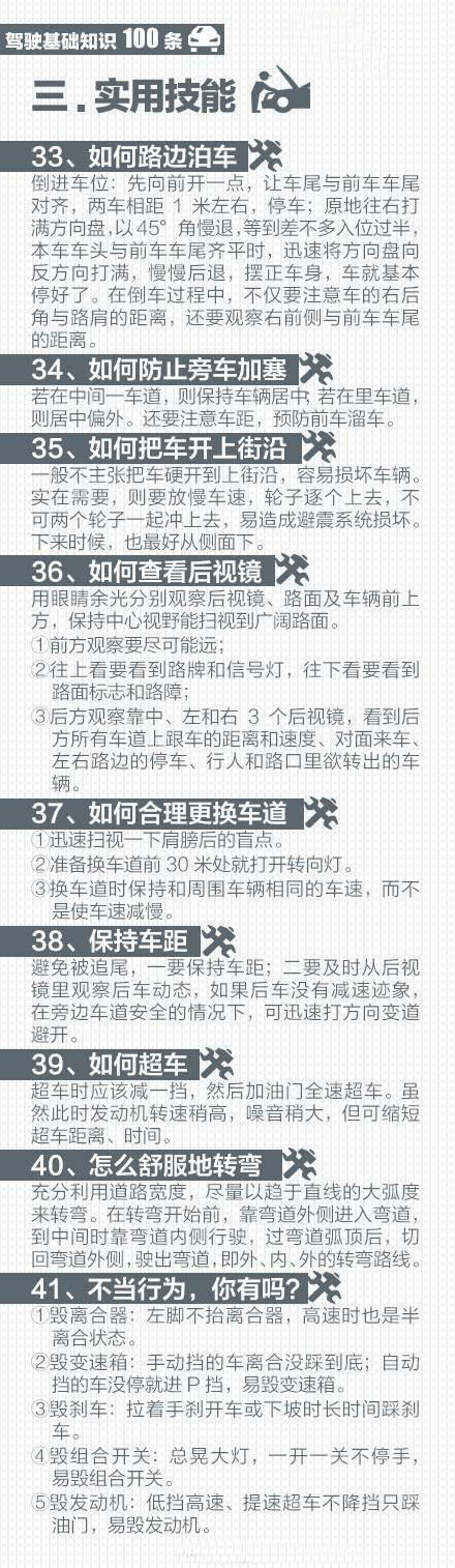 【SUV中國網(wǎng)】開車出行,安全駕駛是第一。為你總結(jié):安全行車基本習(xí)慣、實(shí)用技能、省油竅門、保養(yǎng)招數(shù)、不同路況行車技巧、緊急情況處理辦法……