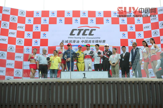 長城潤滑油2013CTCC中國房車錦標賽中國量產(chǎn)車組的決賽在5月12日下午2點半開戰(zhàn),經(jīng)過了14圈的激烈角逐,海馬福美來車隊的陳旭奪得冠軍,北京現(xiàn)代縱橫車隊的朱戴維獲得亞軍并以2分05秒605的成績獲得了本場中國量產(chǎn)車組紅牛最快圈速獎,而賽達RSR車隊的崔岳獲得季軍。