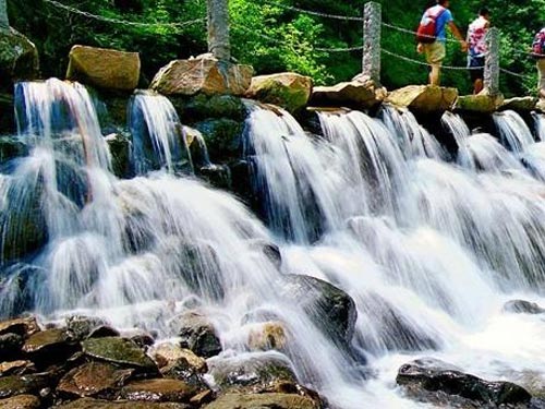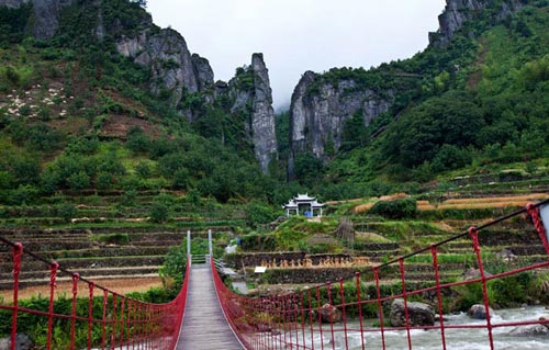 峽谷中溪水出自山高林密的天目山脈,豐盈清澈,四季長流乘坐自劃皮艇順流而下,時而穿越于急灘,時而回蕩在水潭,既有驚險刺激,又有野趣閑趣。漂流溪水兩岸風景優美,有樹有巖,有花有鳥,如穿越畫廊。