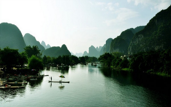 陽朔是一個滿是山水和風(fēng)情的小城市,是一個讓人中毒卻無法自拔的溫柔鄉(xiāng)。它不是蘇杭,不是一個充滿故事和園林的地方,它不是廈門,不是一個漫溢海峽風(fēng)光的地方,它只是陽朔,只是那個江作青羅帶,山如碧玉簪的小城,它只是陽朔,只是那個桂林天小青山大,山山都立青天外的陽朔。只是一條西街,只是一碧漓水,哪怕只是一葉蕩舟,都足以讓人覺得無法逃避它的魅力。