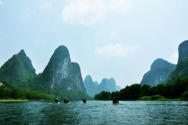 遠山的背景,讓人感嘆陽朔的壯闊,衣帶般蜿蜒流過的漓江,就如細(xì)節(jié)上的少女,又不得不讓人感嘆它的溫柔。