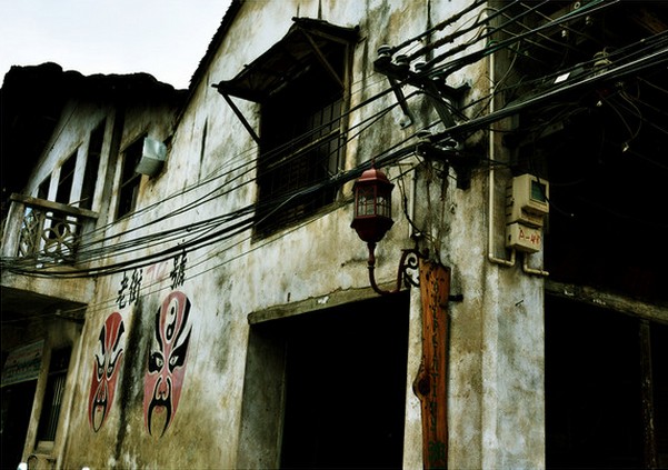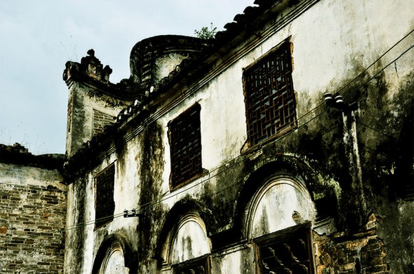 一片古宅,斑駁的玻璃,精致的石雕門,優(yōu)雅的屋脊,無不說明這里曾經(jīng)的輝煌。