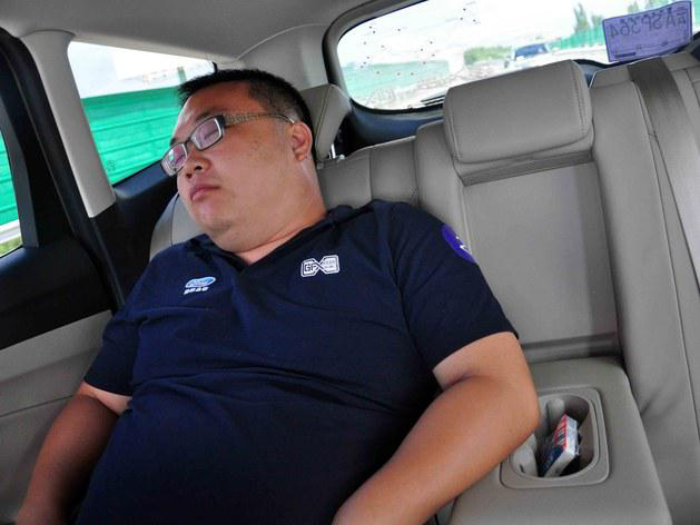 早上來到位于北五環外的龍城麗宮酒店集合后,分好車,吃了個午飯,我們就上路了,1點出發,預計下午五點左右到達草原。由于是三人一車,所以一路上開累了也好有個輪換,可后座的這位媒體老師,也可能是因為翼虎隔音不錯,也可能是我開的太穩了(哈哈),他一上車就昏睡過去了,直到我們到達草原后才醒過來...