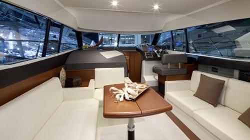 貫穿整個Prestige系列,船上舒適度的這一大特色主要來自她出眾的符合人體工程學的人性化設計(包括在甲板周圍的活動空間),一個非常簡潔的 內部設計,一個很大的生活空間以及一個特大型飛橋。為達到這些標準,Prestige 350增加了一個吸引人的海景主臥;其次,在極舒適的客艙里面還設有兩個可轉換為大床的單人床,和一個帶有獨立淋浴間的衛浴間;當然不可缺少的還有一個設 備完整的廚房,及一個出乎意料寬敞的沙龍和飛橋。