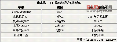 2013年7月神龍第三工廠正式投產,該工廠導入了標志雪鐵龍新1號平臺,使其可以生產A級以下的多款車型,而未來東風雪鐵龍全新小型SUV則有望與即將在2014年實現在華投產的標志2008同基于該平臺打造,除此之外在9月27日上市的全新愛麗舍以及即將上市的301也將采用該平臺打造。