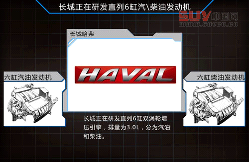 哈弗做為長城旗下SUV品牌被獨立后推出了新款H5和H6車型,哈弗品牌產品銷量已經占到長城總銷量的50%以上。隨著品牌形象的提升和產品銷量的增加,哈弗還將推出多款SUV車型,其中包括旗艦車型H9。長城汽車股份有限公司董事長魏建軍在接受媒體采訪時曾表示:“未來哈弗品牌將實現從H2到H9的全系車型覆蓋,哈弗H9最快將于明年對外發布。”長城汽車技術人員向網通社透露:長城正在研發3.0升直列6缸雙渦輪增壓引擎,并將搭載在旗艦車型H9上。