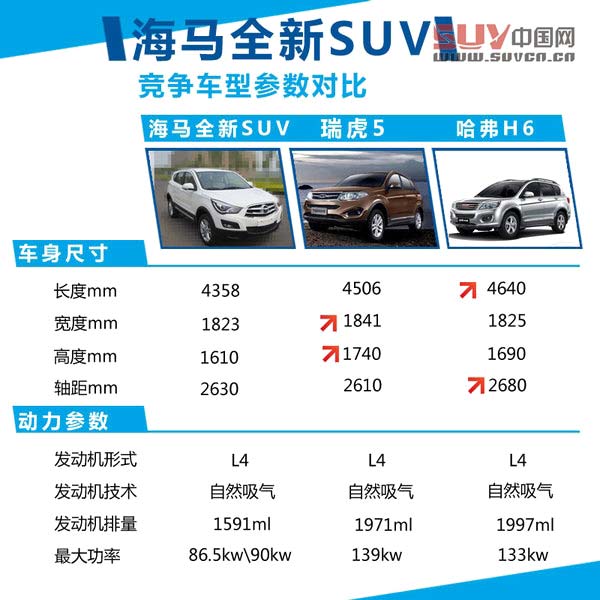 國(guó)內(nèi)緊湊級(jí)SUV市場(chǎng)競(jìng)爭(zhēng)激勵(lì),各大自主品牌均推出了這個(gè)級(jí)別車型。海馬全新SUV推出后,將直接與奇瑞瑞虎5、哈弗H6等車型直接競(jìng)爭(zhēng)。新車在車身尺寸上,軸距達(dá)到了2630mm,與競(jìng)爭(zhēng)對(duì)手差不并不明顯,而1823mm的車身寬度保證了車內(nèi)乘坐空間。在動(dòng)力方面采用自然吸氣發(fā)動(dòng)機(jī),動(dòng)力滿足日常需求。