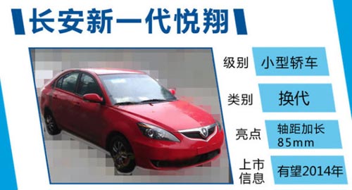 長安全新一代悅翔計劃于2014年正式上市,新車的車身軸距相比現款將加長85mm,達到2600mm,已經達到了A級車的水平。配置方面,新一代悅翔也將進行全面升級,增加觸摸式多媒體系統、無鑰匙啟動等多項配置。此外,其有望搭載一款全新渦輪增壓引擎,動力性能將進一步提升,并匹配長安IMT五速機械式自動變速箱。
