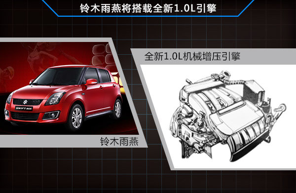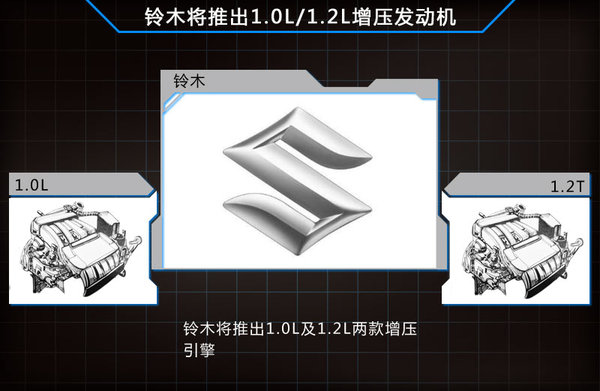 鈴木除將投產全新1.0L機械增壓發動機外,還將推出一款1.2L排量的增壓引擎,未來鈴木旗下多款車型均有望匹配增壓引擎。使新車在動力性能有所提升的同時,油耗也進一步將低。