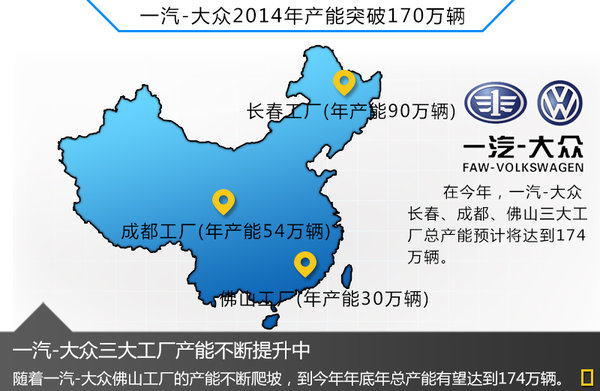 對于一汽-大眾而言,擺在總經理張丕杰面前最大的困難恐怕并不是銷量如何取得增長,而是一直困擾一汽-大眾的產能問題。隨著佛山工廠一期工程的建立完成,在今年年底一汽大眾產能將有望達到174萬輛的產能。張丕杰在接受采訪時介紹到:“2014年佛山一期在爬坡的過程當中會實現二十萬左右的產能,我們正在建設佛山二期,佛山二期的建設已經啟動。”據了解,未來隨著佛山二期工廠的建設,未來一汽大眾總產能將突破200萬輛,進一步保證其向更高的銷量目標發起沖擊。