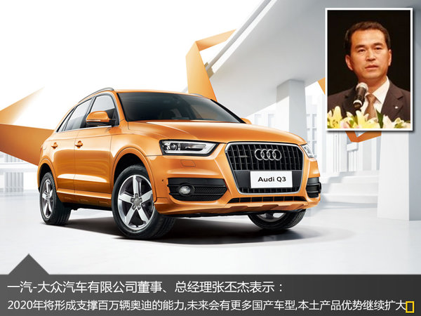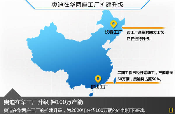 在過去的2013年中,奧迪在華以488,488臺的銷售業績穩居德系三大豪華品牌之首,實現了同比21.2%的增速。隨著銷量的持續增長其產能也將隨之擴充,對此一汽-大眾汽車有限公司董事、總經理張丕杰先生向包括網通社在內的媒體表示:到2020年,奧迪將在華實現100萬輛新車的體系能力。