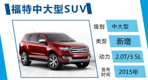 據了解,福特中大型SUV將匹配2.0T以及3.5L兩款引擎,匹配6速手自一體變速器。其中2.0T引擎最大功率為179kw,3.5L最大功率為212kw,該款車型上市后將與漢蘭達等車型競爭。
