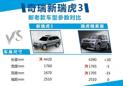 同時(shí)我們也于日前得到了瑞虎3的申報(bào)圖,按照瑞虎3的產(chǎn)品定位將低于瑞虎5,主打時(shí)下小型SUV市場(chǎng)。在整車尺寸方面,瑞虎3長(zhǎng)寬高分別為4420mm/1760mm/1670mm。與現(xiàn)款瑞虎相比,長(zhǎng)度高出了30mm,而寬度和高度相比現(xiàn)款分別減少了5mm/35mm,軸距仍為2510mm。