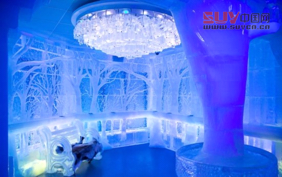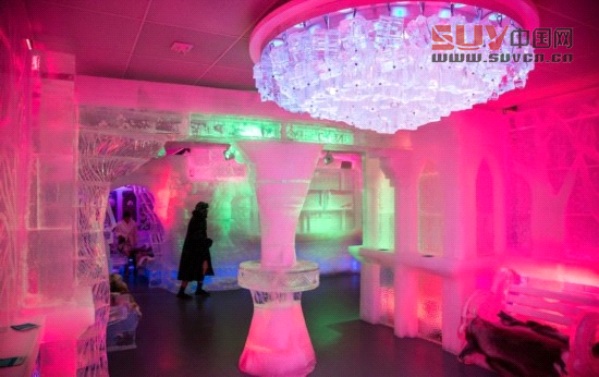 據報道,為建造這一獨特的冰酒吧,酒吧老板特意從加拿大運來90噸的冰。酒吧內部的吧臺、桌子、椅子,甚至是盛放酒水和飲料的杯子都由冰制而成。此外,店主還運用獨特的燈光效果,營造出冰雪世界中童話般的氛圍。
