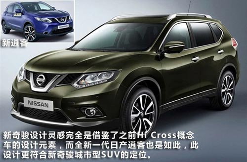 外觀方面,相比現款車型而言,新一代奇駿最為明顯的變化是更加圓潤且動感了,完全放棄了現款的直線條的硬朗設計,這種設計我們并不覺得奇怪,新奇駿設計靈感完全是借鑒了之前Hi Cross概念車的設計元素,而全新一代日產逍客也是如此,當然這樣的設計也更符合新奇駿城市型SUV的定位。