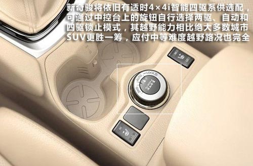 內飾方面,全新奇駿也經過了重新的設計,環抱式中控臺很時尚,和現款完全不同。同時,新奇駿的做工和材質也更加精致了,例如在空調出風口、方向盤等處都運用了鍍鉻材質。這都與現款奇駿的“硬”和“粗”的設計完全不同。
