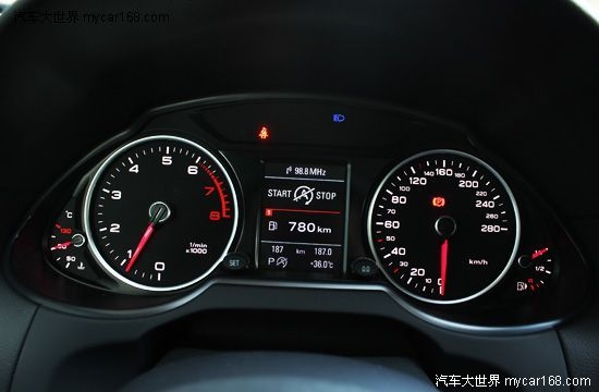 儀表盤設計方面則采用奧迪新式設計,這在奧迪A1、A6、Q3等車型中同樣可見,目的是對家族特征的傳承獲得最大化。白色黑底的格調,在紅色指針的搭配之下,顯得頗為動感,而且功能指示清晰明了,令人賞心悅目。